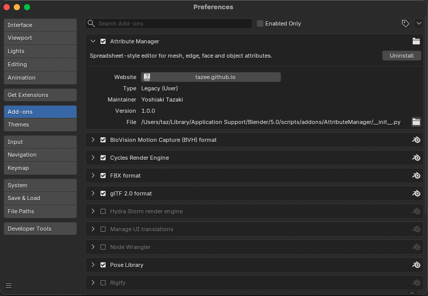 - Attribute Manager for Blenderの新規リリース